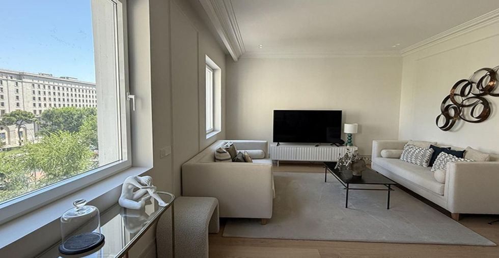 Situada en la Plaza de San Juan de la Cruz, en el distrito de Chamberí en Madrid, esta casa ofrece impresionantes vistas totalmente despejadas a los Nuevos Ministerios, las torres de Ernst & Young, y la Torre Picasso. El edificio ha sido recientemente renovado, incluyendo el portal y las escaleras. Además, cuenta con un servicio de portero durante el día. Reforma integral del piso, incluyendo una redistribución total y mejoras en los aislamientos térmicos y acústicos de suelos, paredes y techos para maximizar el confort y la privacidad. Comodidades: La casa dispone de tres habitaciones con baño en suite y un aseo de cortesía. Cocina, comedor y salón forman un amplio espacio luminoso y acogedor con vistas totalmente despejadas. Además, hay un cuarto adicional dedicado a lavandería totalmente equipado. Cocina de diseño totalmente equipada con electrodomésticos de alta.